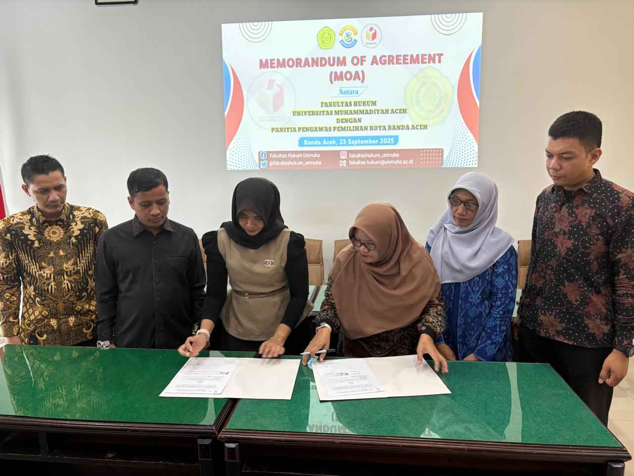 Rangkaian kegiatan ini diakhiri dengan penandatanganan Memorandum of Agreement (MoA) antara Fakultas Hukum Unmuha dan Bawaslu Kota Banda Aceh.