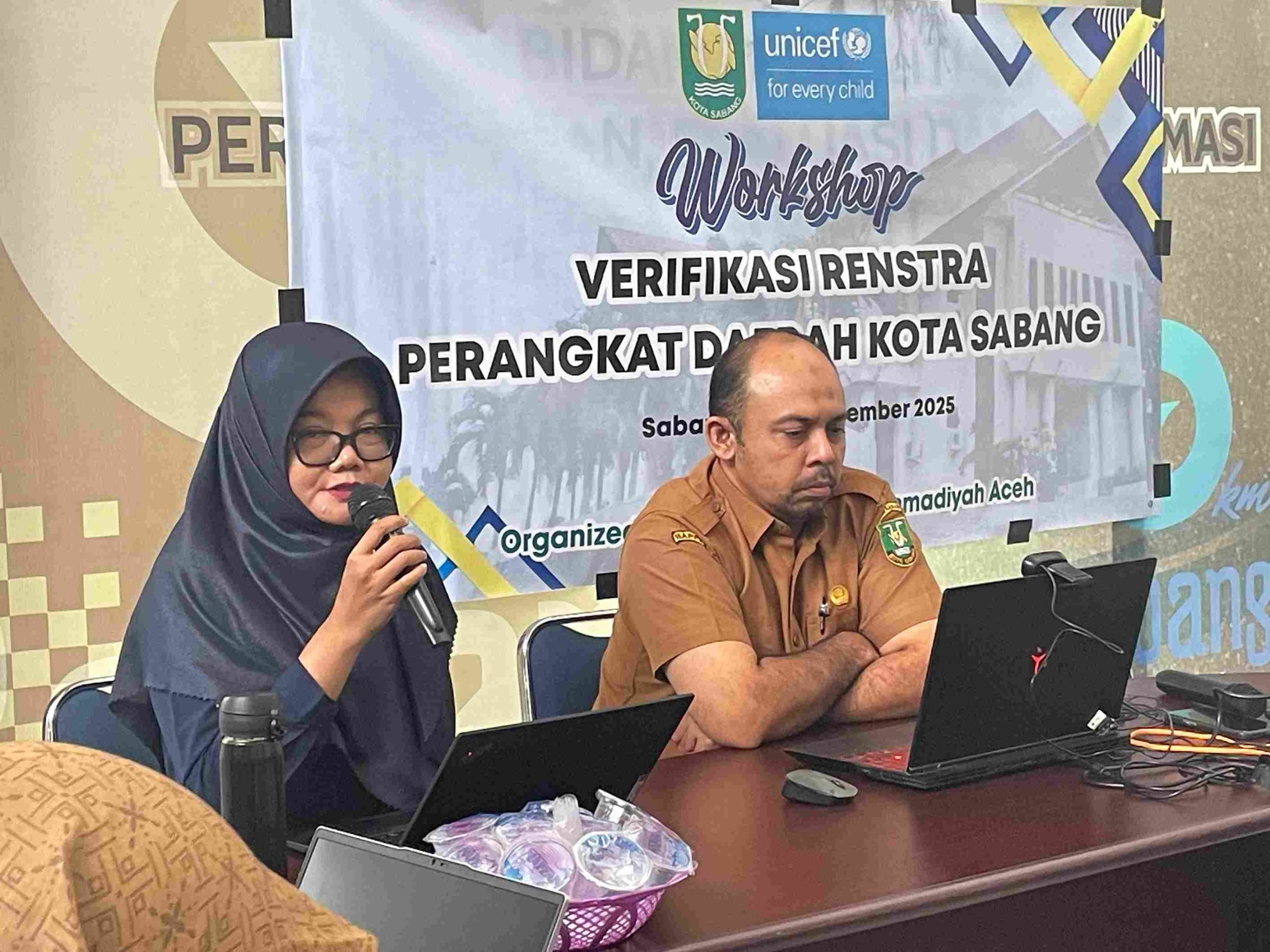Universitas Muhammadiyah Aceh (Unmuha) berkolaborasi dengan UNICEF Aceh dan Pemko Sabang Selenggarakan Workshop Verifikasi Renstra Perangkat Daerah yang berlangsung di GIS Studio, Bappeda Kota Sabang, pada 24 – 26 November 2025.